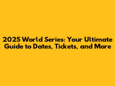 2025 World Series: Dates, Tickets, And What You Need To Know