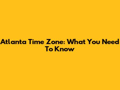Atlanta Time Zone: What You Need To Know