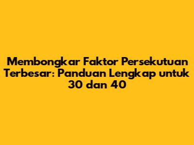 Halo guys! Pernahkah kalian berpikir tentang angka-angka yang ada di sekitar kita? Angka-angka ini punya 'teman-teman' tersembunyi yang disebut faktor. Nah, hari ini kita akan menyelami dunia faktor, khususnya mencari tahu faktor dari 30 dan 40. Ini bukan cuma soal matematika dasar, tapi juga cara keren untuk melatih otak kita biar makin jago mikir. Yuk, kita bedah satu per satu, apa sih sebenarnya faktor itu, gimana cara nemuinnya, dan yang paling penting, gimana sih kita bisa nemuin faktor persekutuan terbesar (FPB) dari dua angka kesayangan kita ini: 30 dan 40. Siap-siap ya, kita bakal bikin matematika jadi seru dan gampang dimengerti!