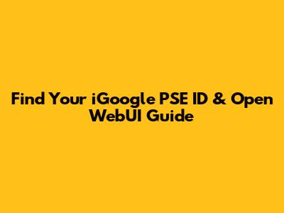 Find Your IGoogle PSE ID & Open WebUI Guide