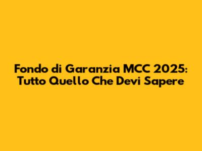 Aggiornamenti e Novità sul Fondo di Garanzia MCC per il 2025