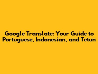 Hey everyone! Today, we're diving into the awesome world of Google Translate, specifically focusing on how it helps us bridge the language gap between Portuguese, Indonesian, and Tetun. Whether you're a traveler, a student, or just curious about different cultures, Google Translate can be your best friend. Let's break down how this handy tool works and explore its capabilities, along with some tips and tricks to get the most out of it. Get ready to unlock a whole new world of communication, guys!