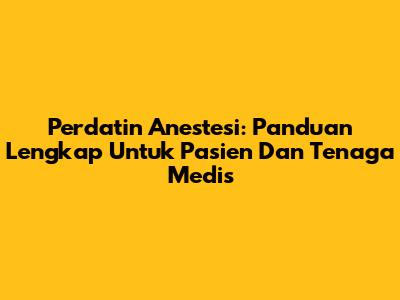 Perdatin Anestesi: Panduan Lengkap Untuk Pasien Dan Tenaga Medis
