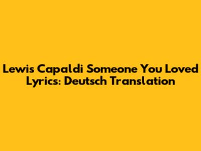 Lewis Capaldi "Someone You Loved" Lyrics: Deutsch Translation
