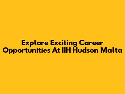 Explore Exciting Career Opportunities At IIH Hudson Malta