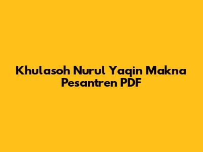 Khulasoh Nurul Yaqin & Pesantren: PDF Guide