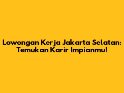 Lowongan Kerja Jakarta Selatan: Temukan Karir Impianmu!