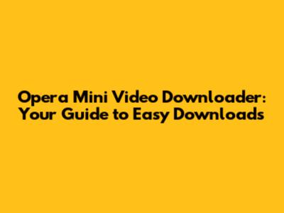 Opera Mini Video Downloader: Your Guide To Easy Downloads