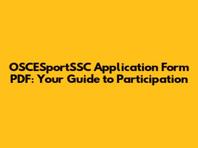 OSCESportSSC Application Form PDF: Your Guide To Participation