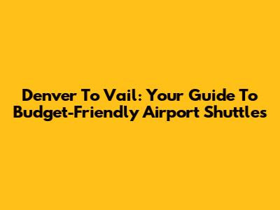 Denver To Vail: Your Guide To Budget-Friendly Airport Shuttles