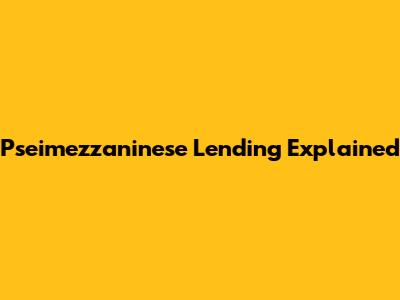 Pseimezzaninese Lending: A Simple Guide