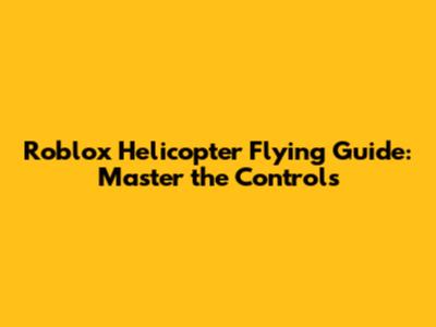 Roblox Helicopter Flying Guide: Master The Controls