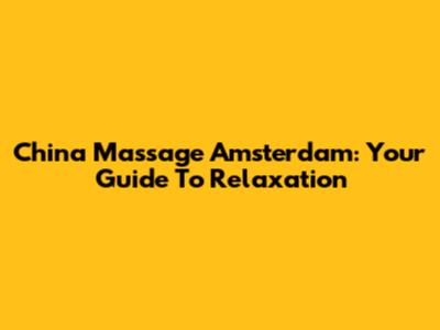 China Massage Amsterdam: Your Guide To Relaxation