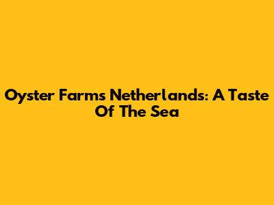 Oyster Farms Netherlands: A Taste Of The Sea