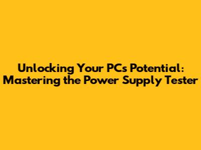 Unlocking Your PC's Potential: Mastering The Power Supply Tester