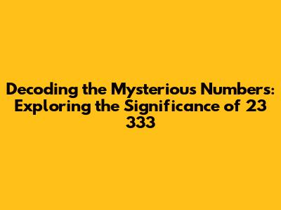 Unpacking the Numerological Significance of 23 333