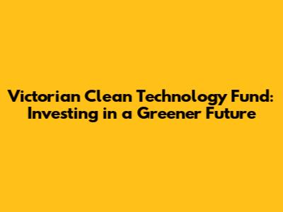 Victorian Clean Tech Fund: Investing In A Greener Future